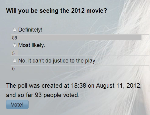The Poll History page shows the results of all the polls in the Wiki's history, since August 2012. The polls's questions are always created by the admin team, and everyone is allowed to vote once.