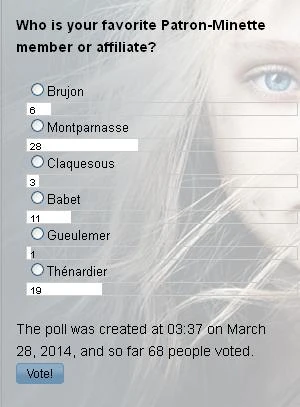 Montparnasse became the most favourite member of Patron-Minette, followed by Thénardier. Third place belongs to Babet. Claquesous and Gueulemer got the least number of votes.